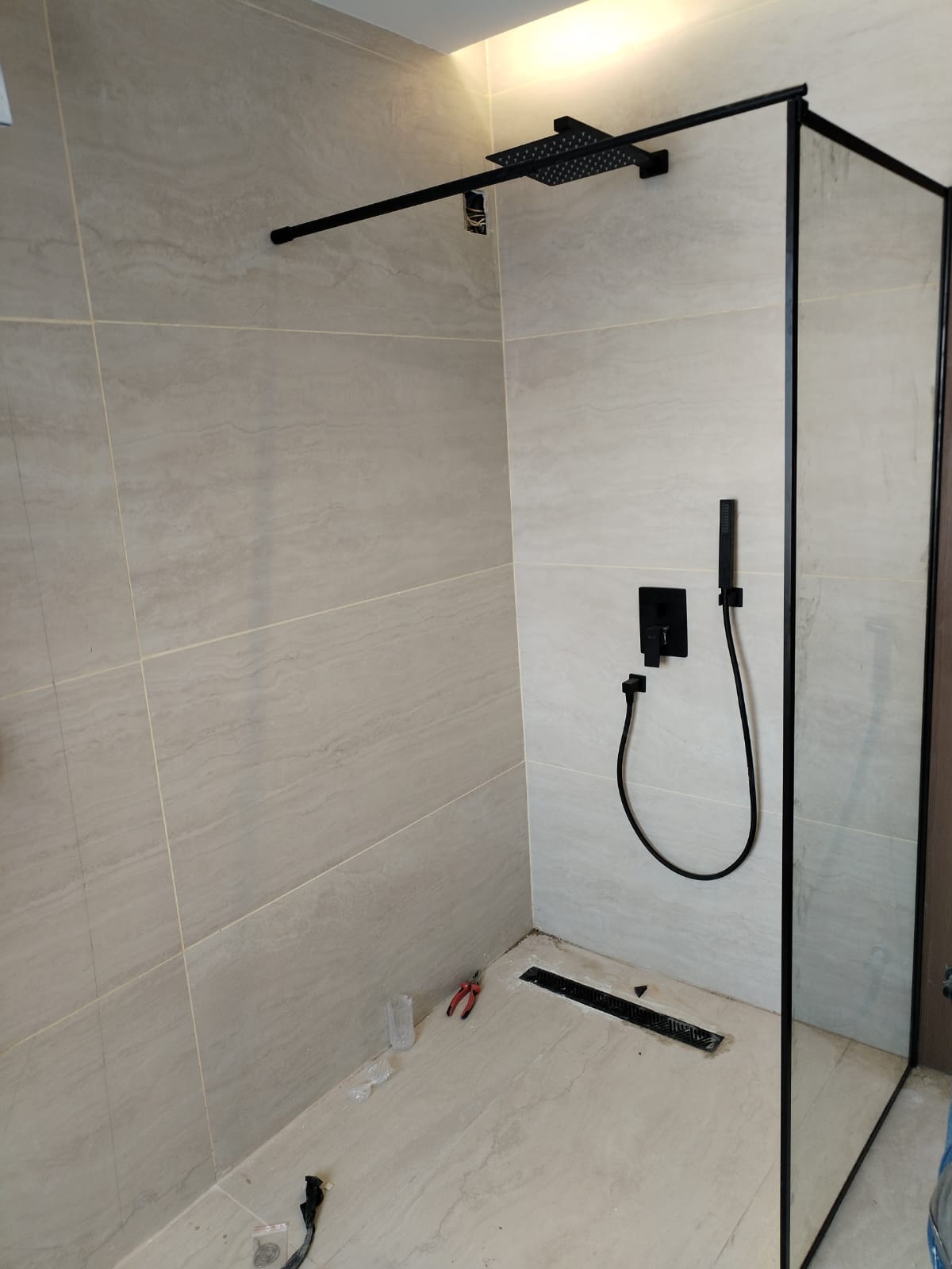 كذلك ينظف البلاط من أية غبار أو أتربة بالكمبروسر لضمان التخلص منها أولًا بأول.